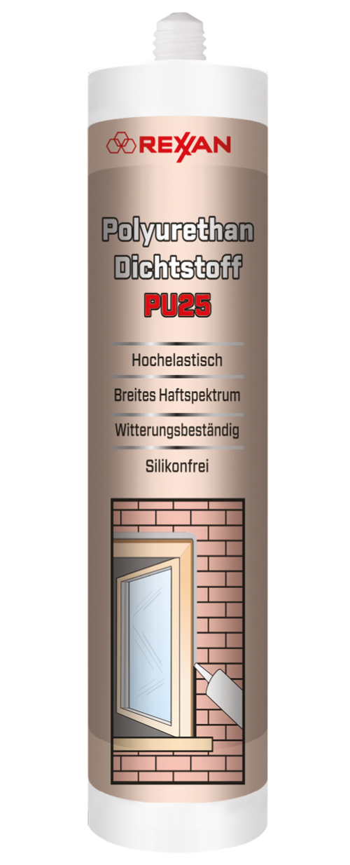 Weichelastischer Dichtstoff auf Polyurethanbasis, der durch Luftfeuchtigkeit zu einem Elastomer aushärtet. PU25 eignet sich für die Abdichtung unterschiedlichster Fugen mit hoher Bewegungsaufnahme im Baubereich, wie z. B. Anschlussfugen im Hochbau, an Fenstern und Türen, Rolladenkästen, Fenster-/Sohlbänken, Fassaden- und Metallverkleidungen, Balkonbrüstungen, Mauern, Porenbeton, sowie für viele Abdichtungen im Holz- und Metallbau. Die zulässige Gesamtverformung von 25% ist toleranzausgleichend. Produkteigenschaften: • PU25 härtet blasenfrei aus • hochelastisch und flexibel • hervorragende Haftung auf porösen und glatten Oberflächen • für Innen- und Aussenbereiche • stoss- und vibrationsdämpfend • witterungsbeständig • silikonfrei • emissionsarm Anwendung: 1. Die Haftflächen müssen sauber, staub- und fettfrei sowie tragfähig sein. 2. Ring-Pull Bodendeckel der Kartusche entfernen. 3. Metallverschluss (Membrane) der Kartusche mit spitzem Gegenstand (z. B. Dorn, Schraubendreher) vorsichtig durchstossen und die Kunststoffdüse je nach Auftrags- oder Fugenbreite anschneiden. 4. Bei Abdichtungen PU mit Kartuschenpistole in Fuge einspritzen und vor Hautbildung mit Seifenwasser abglätten. 5. Bei Klebeanwendungen PU mit Kartuschenpistole strang- oder punktförmig auftragen, die Teile zusammen- fügen und ca. 15 Min. fixieren (abstützen, klammern). 6. Verarbeitungs- und Aushärtetemperatur: 5°C bis 35°C (optimal: 15 bis 25°C), Hautbildezeit: 10 Minuten bis über 1 Stunde, Endfestigkeit: nach ca. 24 Stunden. ![]() Hinweis: Darf nicht in die Hände von Kindern gelangen. Berührung mit den Augen und der Haut vermeiden. Aufbewahren: Stets frostfrei, kühl und gut verschlossen lagern. Die Haltbarkeit beträgt in der ungeöffneten Originalverpackung 18 Monate. |