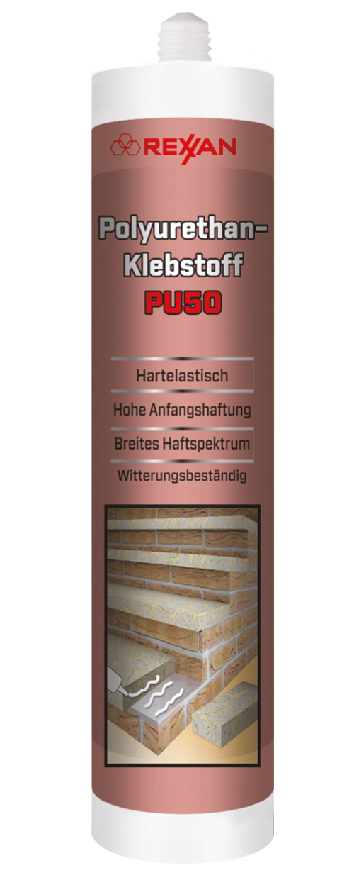 Ein hartelastischer Konstruktions-Klebstoff auf Polyurethanbasis, der durch Luftfeuchtigkeit zu einem Elastomer aushärtet. PU50 ist insbesondere geeignet für dynamisch beanspruchte, strukturelle Verklebungen von Beton, Holz und Keramik miteinander sowie mit anderen bauüblichen Materialien wie Faserzement, Gipsplatten, Stahl, Aluminium, Hart-PVC, GFK, PU und Mineralfaser. Somit können Fensterbänke, Treppenstufen, Rammschutzleisten, Tür- und Hinweisschilder sowie viele weitere Materialien sicher und konstruktiv verklebt werden. Produkteigenschaften: • PU50 härtet blasenfrei aus • hartelastisch und flexibel • hervorragende Haftung auf porösen und auf glatten Oberflächen • für Innen- und Aussenbereiche • hoher elektrischer Widerstand • schallabsorbierend, vibrationshemmend, untergrundausgleichend • mechanisch bearbeitbar (schleifen, feilen, sägen, bohren, überlackieren) • witterungsbeständig • silikonfrei und emissionsarm Anwendung: 1. Die Haftflächen müssen sauber, staub- und fettfrei sowie tragfähig sein. 2. Ring-Pull Bodendeckel der Kartusche entfernen. 3. Metallverschluss (Membrane) der Kartusche mit spitzem Gegenstand (z. B. Dorn, Schraubendreher) vorsichtig durchstossen und die Kunststoffdüse je nach Auftragsbreite anschneiden. 4. Kartusche in Auspresspistole einlegen und PU strang- oder punktförmig auftragen. 5. Teile zusammenfügen und ca. 15 Min. fixieren (abstützen, klammern); Endfestigkeit: nach ca. 24 Stunden. 6. Verarbeitungs- und Aushärtetemperatur: 5°C bis 35°C (optimal: 15 bis 25°C). ![]() Hinweis: Darf nicht in die Hände von Kindern gelangen. Berührung mit den Augen und der Haut vermeiden. Aufbewahren: Stets frostfrei, kühl und gut verschlossen lagern. Die Haltbarkeit beträgt in der ungeöffneten Originalverpackung 18 Monate. |