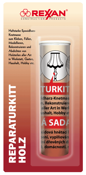 Holz-Kitt für dauerhafte, hochfeste Reparaturen an Holzteilen aller Art. Zum Ausbessern von Rissen, Bohrlöchern, aus- und abgebrochenen Holzstücken und Abdichten von Fugen an: Tür- und Fensterrahmen, Furnieren, Brettern, Bohlen, Modellbauten (Flugzeuge, Schiffe, etc.), Holzspielzeug, Holzschrauben und -gewinden, u. v. m. • schnellhärtend, ideal für Notfallreparaturen • extrem hart und haftstark • wasser-, fett- und chemikalienbeständig • alterungs- und temperaturbeständig: -30°C bis +120°C (Universal-Kitt), bis +150°C (Holz- und Kunststoff-Kitt), bis +180°C (Stahl-Kitt) • mechanisch bearbeitbar (schleifen, feilen, sägen, bohren) • überstreich- und überlackierbar • stoss- und vibrationshemmend • elektrisch isolierend • nicht entflammbar • VOC- und lösemittelfrei • für Reparaturarbeiten unter Wasser geeignet • härtet nach 10 Minuten Anwendung 1. Reparaturstellen müssen tragfähig, sauber und fettfrei sein. 2. Benötigte Menge an Kitt von der Rolle abschneiden, 30 Sekunden kräftig kneten und innerhalb 3 Minuten verbrauchen. 3. In Abhängigkeit von der Materialstärke härtet die Masse in 10 bis 40 Minuten aus und kann danach mechanisch weiterbearbeitet (feilen, sägen, schleifen, bohren) oder überstrichen werden. ![]() Aufbewahren: Stets kühl und gut verschlossen lagern. |