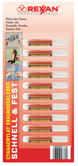 Glasklarer, in Sekunden härtender Klebstoff auf Basis von Cyanacrylat, der hochfeste Klebungen an zahlreichen Materialien wie Gummi, Metall, Porzellan, Keramik, Holz, Kunststoffe (ausser PE, PP und Teflon) ermöglicht. Klebt punktgenau und ist besonders geeignet für glatte, harte Materialien. Fliesst in kleinste Ecken und Spalten. Die Einsatzmöglichkeit ist beschränkt auf kleinflächige Verklebungen. Produkteigenschaften: • universell und vielseitig einsetzbar • ultraschnelle Aushärtung • Handfestigkeit in Sekunden • spaltfüllend • extrem schlagfest • mechanisch bearbeitbar • treibstoffbeständig • alterungs- und temperaturbeständig von -50°C bis +120°C • lösemittel- und silikonfrei • Farbe: glasklar Anwendung 1. Klebeflächen müssen sauber, trocken und fettfrei sein; glatte Flächen anrauen. 2. Tubenkappe abnehmen und Düsenspitze vorsichtig aufschneiden. 3. Klebstoff einseitig dünn auftragen und Teile sofort zusammenfügen. 4. Nach Gebrauch wieder mit Tubenkappe verschliessen und kühl lagern. Hinweise: Darf nicht in die Hände von Kindern gelangen. Berührung mit den Augen und der Haut vermeiden. Klebt in Sekunden auch Haut und Augenlider! Aufbewahren: Stets gut verschlossen und kalt lagern, möglichst im Kühlschrank. Die Haltbarkeit beträgt in der ungeöffneten Originalverpackung 12 Monate. |