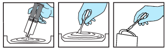 3. Die Kolben langsam in den Spender drücken und gewünschte Klebstoffmenge auf geeignete Mischunterlage (z. B. Blisterverpackung) auftragen.
